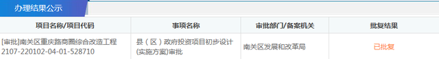 2月28日,南关区发展和改革局率先发布了南关区重庆路商圈综合改造工程的实施方案的审批批复公示。