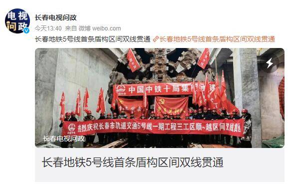 Top1: 长春地铁5号线首条盾构区间双线贯通