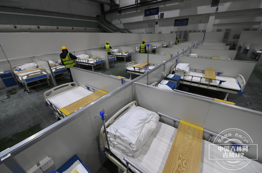 13日中午12时,中国吉林网再度来到长春国际会展中心,此时,2、3、4号馆内,疗区床位已经全部安置妥当,洁白、崭新的被褥整齐地铺好,床头柜上还贴心地摆放了洗漱用品,有工作人员正在逐一摆放垃圾桶,并对地面进行反复清洁。