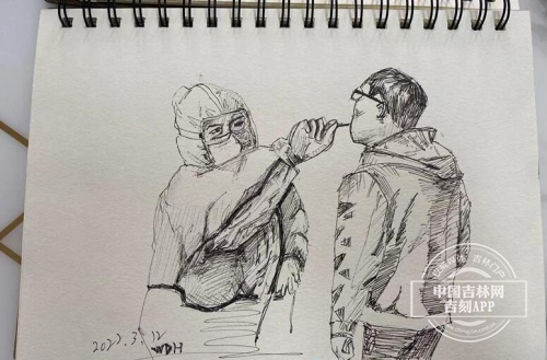 自汪清发生新冠肺炎疫情以来,医护人员、人民警察、机关干部、志愿者等风雨无阻坚守在战“疫”一线。很多人虽无法赶往前线施以援手,但也都在以自己所能想到的方式为一线加油鼓劲……在汪清县第六中学美术老师吴德恒的画笔下,一幕幕感人的场景组成了一幅幅速写画。