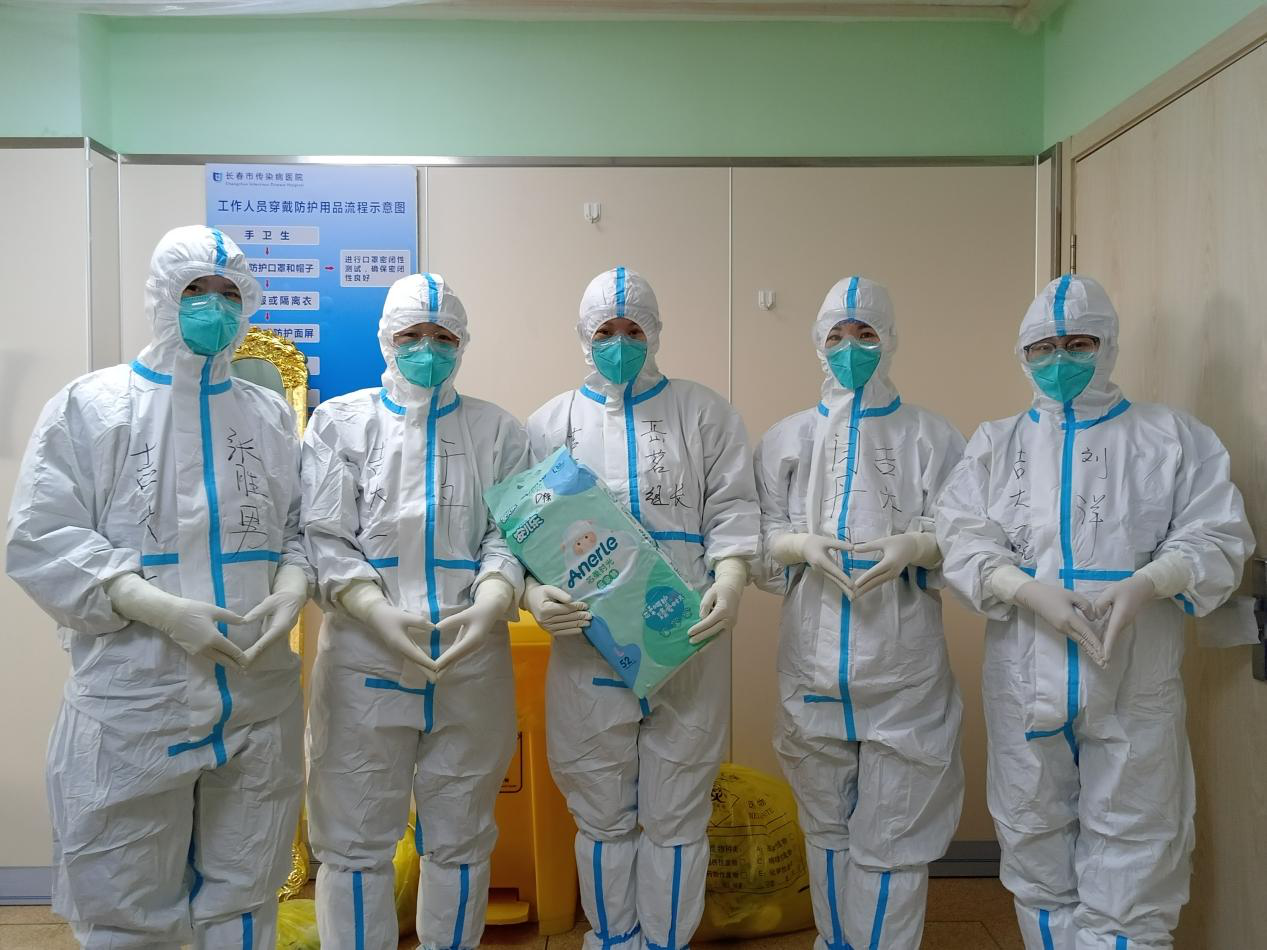在赵晓霜的带动下,D栋的护士们纷纷加入了“临时妈妈”大家庭。她们将自己的牛奶、水果带到红区拿给患儿妈妈补充营养,以期她能快速恢复健康。又通过各种渠道为患儿购买奶粉、纸尿裤、衣物等生活用品,为母女送来崭新柔软的棉被。稍有空闲便过去帮着为患儿检查尿片、喂奶喂水,在医护人员的精心照料下,这对母女目前的病情与精神状态都逐渐向好。