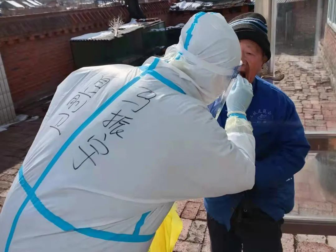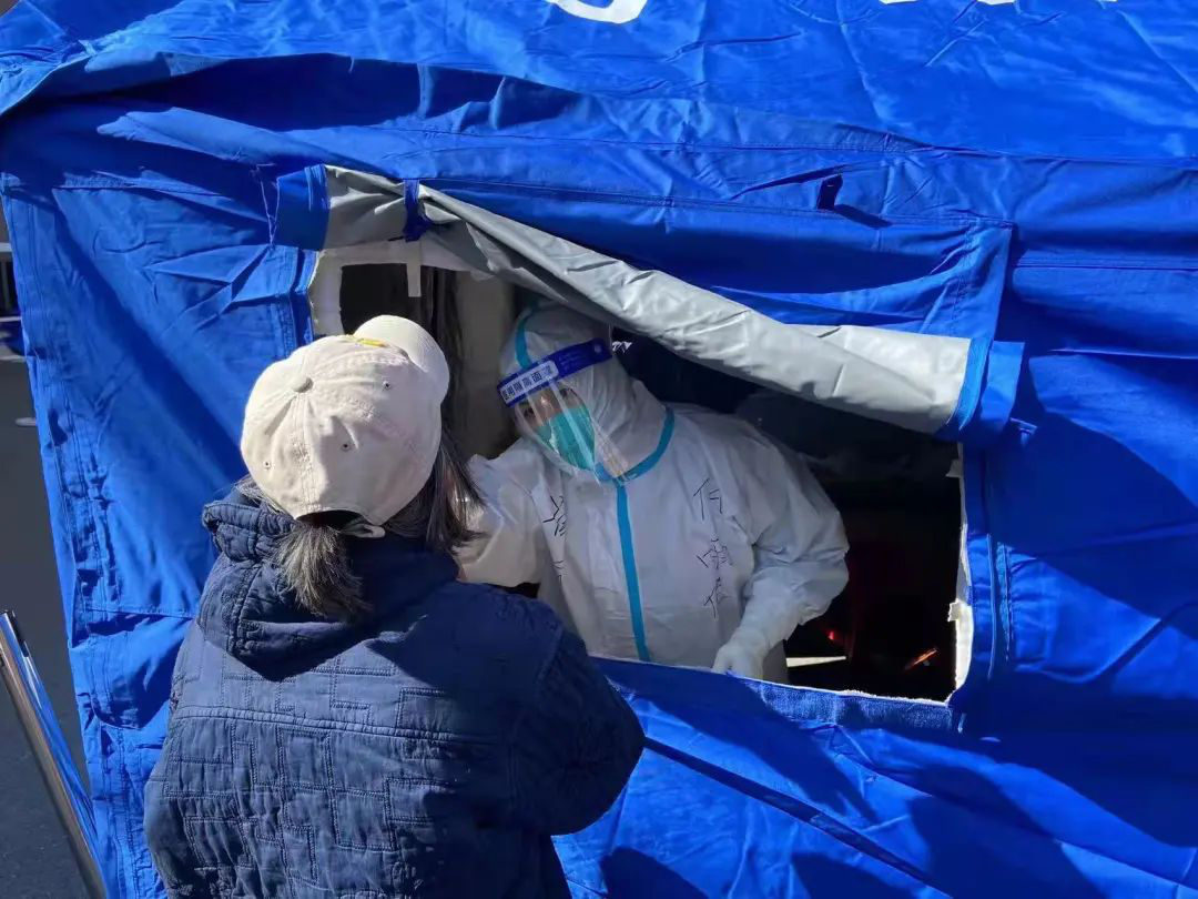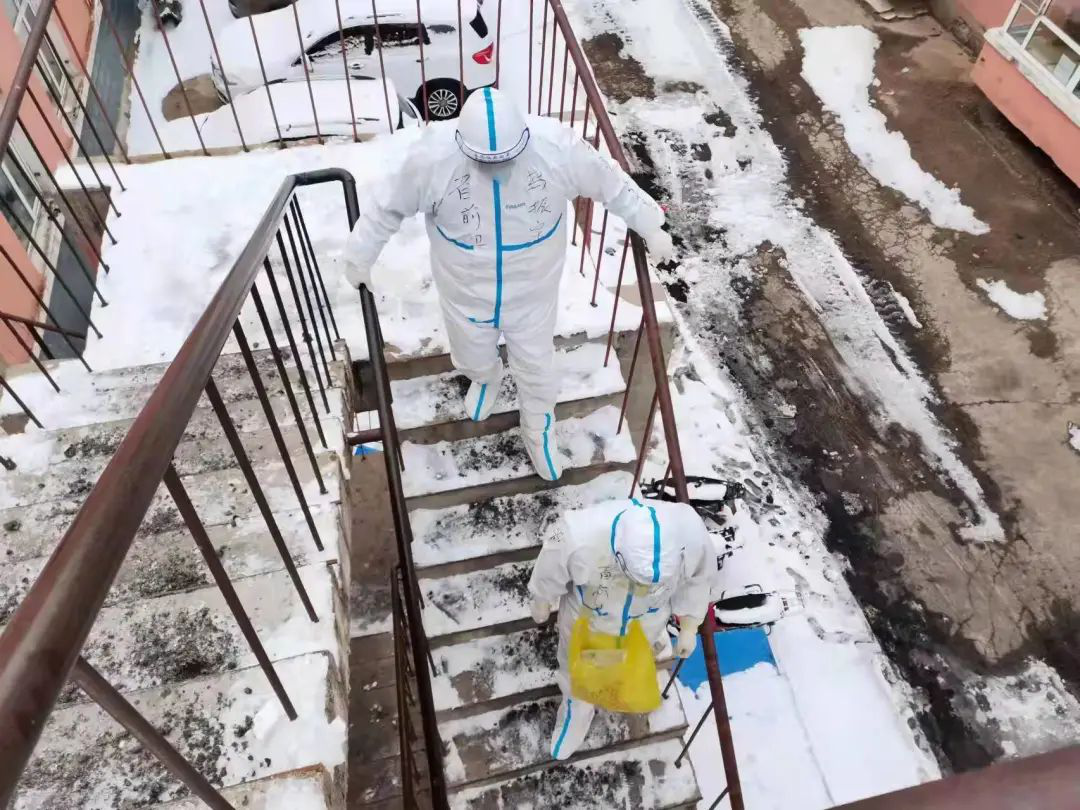 3月11日19时,刚到达九台区驻地的我们便接到了第一个采集任务,由于是上批次十混一阳性结果人群,所以需要我们紧急晚间入户采集。初春的夜晚地冻返凉,穿着防护服也禁不住浑身打颤,目标住户都分散在老旧楼小区,黑天寻找有难度,经过爬楼采样后完成工作回到驻地已是深夜。
