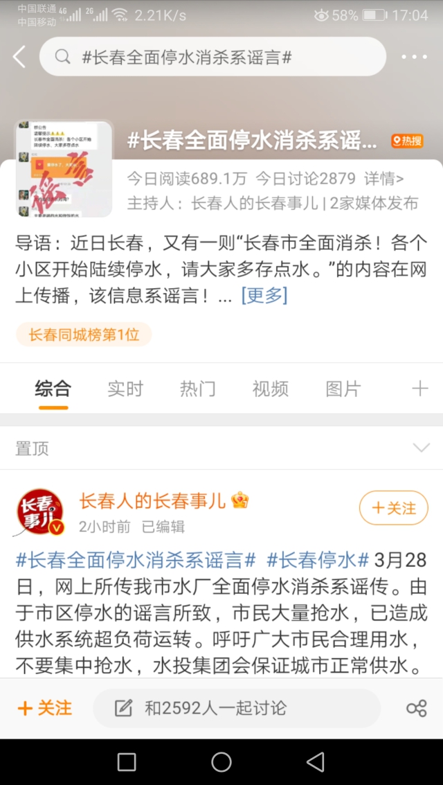 当天,长春市各城区停水消杀的消息在各大平台和朋友圈被转载。