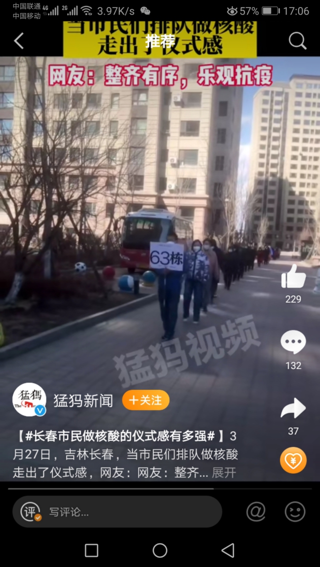 3月27日,吉林长春的一个小区内,做核酸的队伍突然有了“奥运会进场”的既视感。