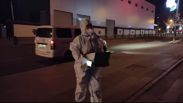 李桂梅和志愿者每天忙碌奔波,早晨五六点就出门,天天晚上过了12点才能结束,由于觉得回家来回太浪费时间,再加上配合防疫工作,现在李桂梅和志愿者们就在牡丹园社区提供的一个小场地打地铺,连被子都没有,每天只能睡上三个多小时,还不敢熟睡,生怕电话听不见。工作的时候怕浪费防护服,不吃饭不上厕所,“我不怕辛苦,我就把大家吃不上新鲜蔬菜!”顶着起泡的嘴唇和沙哑的嗓子,李桂梅和她的志愿者们,继续奔波在抗疫的路上……