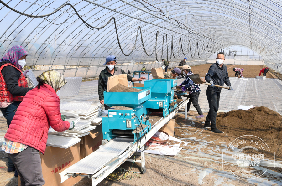 采访当天,村内30余处育苗大棚内,村民利用农机正在加紧育苗,与过去不同的是,每一处育苗大棚门口都放置消杀用品,村民都戴着N95口罩,相互之间的配合没有往日的“紧密”,通过农机传送的方式,将插秧盘装上育苗,然后手动整齐地摆放在大棚内。“今年的水稻育苗受插秧盘的影响同比往年稍稍晚了三天,正常应该是本月5号就开始育种了,但是今年育种是7号正式开始。”吉林省合十农业科技发展有限公司种植经理安明星说,疫情对于育苗的影响微乎其微,各级政府多方协调,农资未受影响,整个育苗的农资已备齐,下一步就差肥料的运抵。