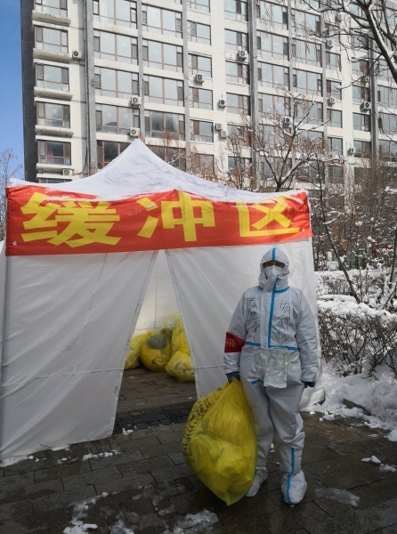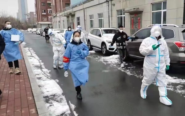 3月29日,因4名转移人员确诊阳性,全小区封控管制,4、5号楼警戒封控。志愿者团队面临着小区没有物业,只剩10名志愿者可工作、工作量成倍增加的艰难局面。