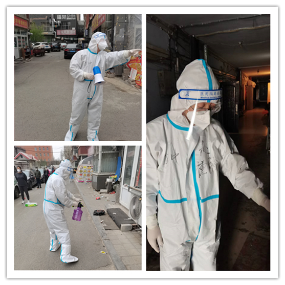 “你好,社区发放试剂盒,请问你家有几口人?”此刻张洪涛主任正挨家挨户发放试剂盒,在疫情防控的紧要时刻,家中母亲突发疾病,6个月的幼子嗷嗷待哺,他在两难抉择中不忘初心使命,舍小家为大家,毅然奔赴抗疫一线参加到闭环志愿服务工作。在工作中,他耐心地为居民答疑解惑,不断提醒居民做好个人防护,和“战友”们一起确保居民生活物资最后一公里到最以后一米的通畅。尽管每日的奔波与呼喊,脱下防护服的他已经精疲力尽,但作为学校疫情防控工作联络员,回到住宿地他第一件事就是打开从家带来的电脑对学校每日排查情况汇总上报,确保志愿服务和日常工作两不误。