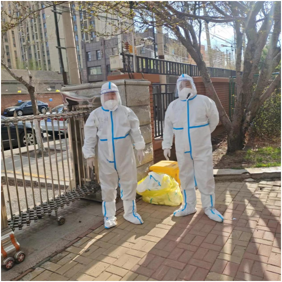 看到平日里一起工作的同志都加班加点地奋战在抗疫一线上,居住在封控小区的闫巍老师心急如焚。封控期间他多次向学校申请小区解封后加入到学校志愿服务队伍中。在得知学校组织人员开展闭环志愿服务工作后,闫巍老师积极联系属地街道、社区表达了回到工作单位参加志愿服务的意愿。疫情期间人员跨区通行手续繁琐,经过多次协调沟通最终闫老师准时与同事们集合,连夜参加到居民生活物资的运输工作中。变身“大白”的闫老师,快速掌握了维持秩序、采集信息、帮助老人输入信息等工作。“请您准备好吉祥码。”“请您戴好口罩。”他充分发挥了教师细心、耐心和沟通能力强的长处,如同在课堂上春风化雨一般,让疫情之下的广大居民感受到了温暖与关怀。