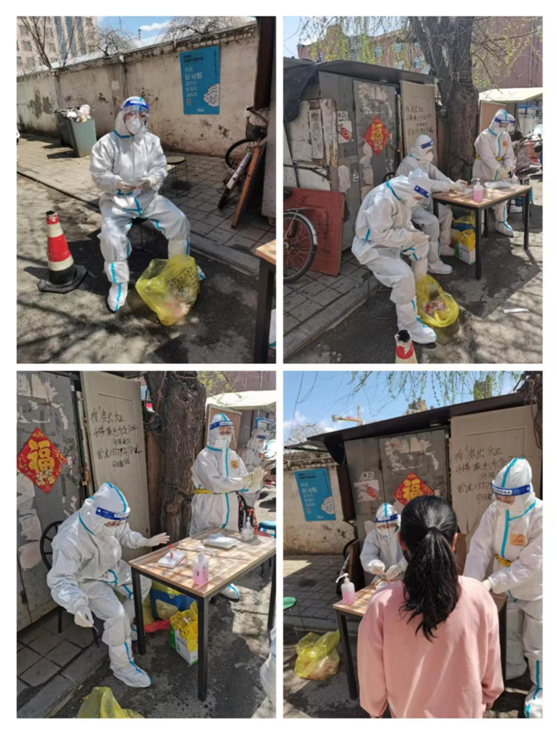 赵德强校长从3月9日起带领58中学“红粟”志愿服务队协助三道镇英俊街道在惠泽园小区、同盟学校、科技学院等核酸检测点开展志愿服务活动。维持秩序、登记扫码、帮助老人注册“健康码”、进村入户发放核酸检测试剂盒,哪里有任务哪里就有他的身影。在学校工作群里他宣传防护知识,呼吁全体教师在保证日常线上教学质量的前提下,积极加入到志愿服务中,就地下沉协助属地物业疫情防控工作,并鼓励大家克服眼前的苦难,坚定战胜疫情的信心。