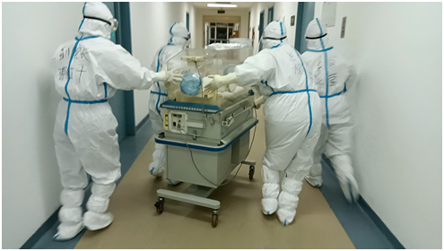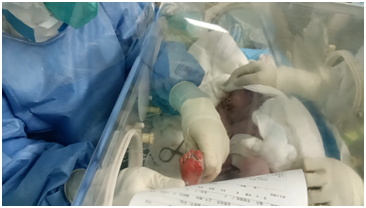 组织产科、新生儿两大团队,由产科医生、助产士、新生儿医生、新生儿专业护士组成。曹红十副院长特别强调预防新生儿感染和安全转运是重中之重,宝宝在出生后立即入温箱,隔着温箱要顺利完成脐带结扎、新生儿评估等一系列工作,随后将宝宝迅速转运,在缓冲区再次更换温箱及转运护士,送达事先准备好的清洁区,从而实现最大限度降低感染的全链条管理。