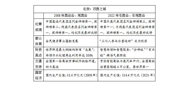 双奥之城,闪耀世界。两次奥运会,都显示了中国体育发展的新高度,展示了中国综合国力的跨越式发展,也见证了你从懵懂儿童向有为青年的跨越。亲历其中,你能感受到体育的荣耀和国家的强盛;未来前行,你将融入民族复兴的澎湃春潮。卓越永无止境,跨越永不停歇。