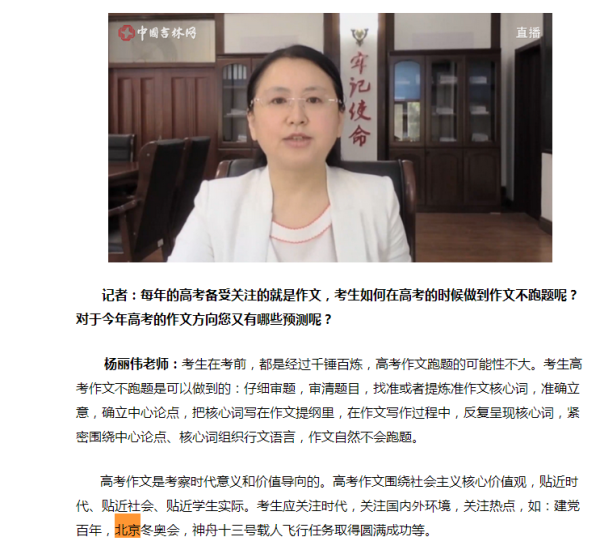 因为这个题目方向,在高考前中国吉林网推出的《2022高考大联播》第二期节目就有关注。