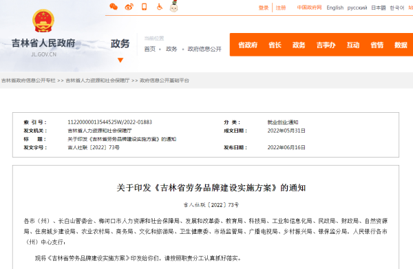 6月16日,中国吉林网从吉林省人民政府网站获悉,《吉林省劳务品牌建设实施方案》(下称《实施方案》)印发。