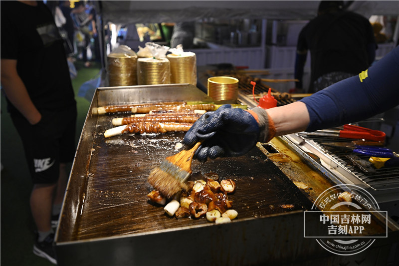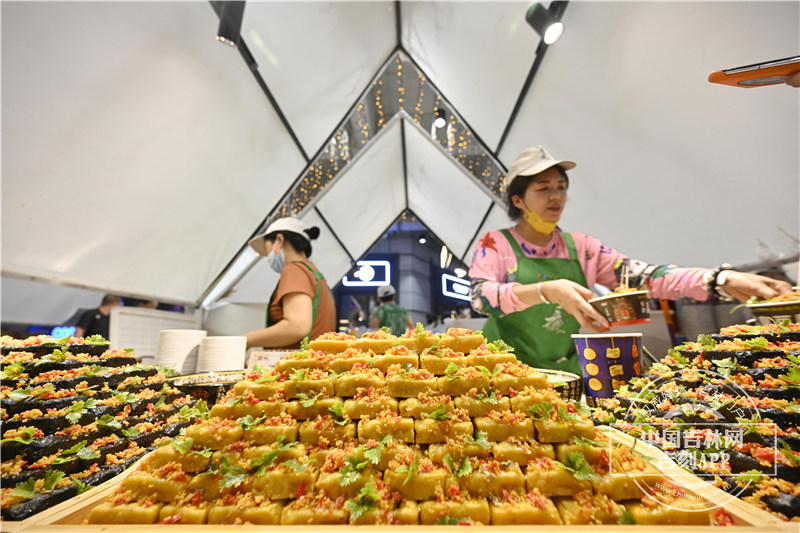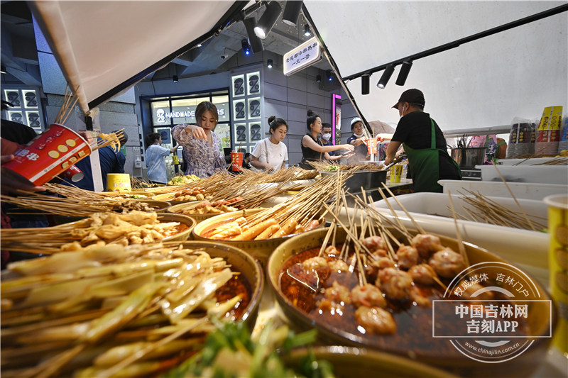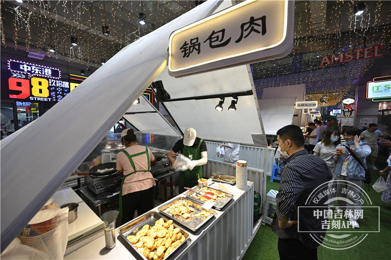 一个个大排档里,新疆羊肉串、海鲜大排档、炭火烤肉、老式锅包肉……各种美食小吃散发出诱人的香味