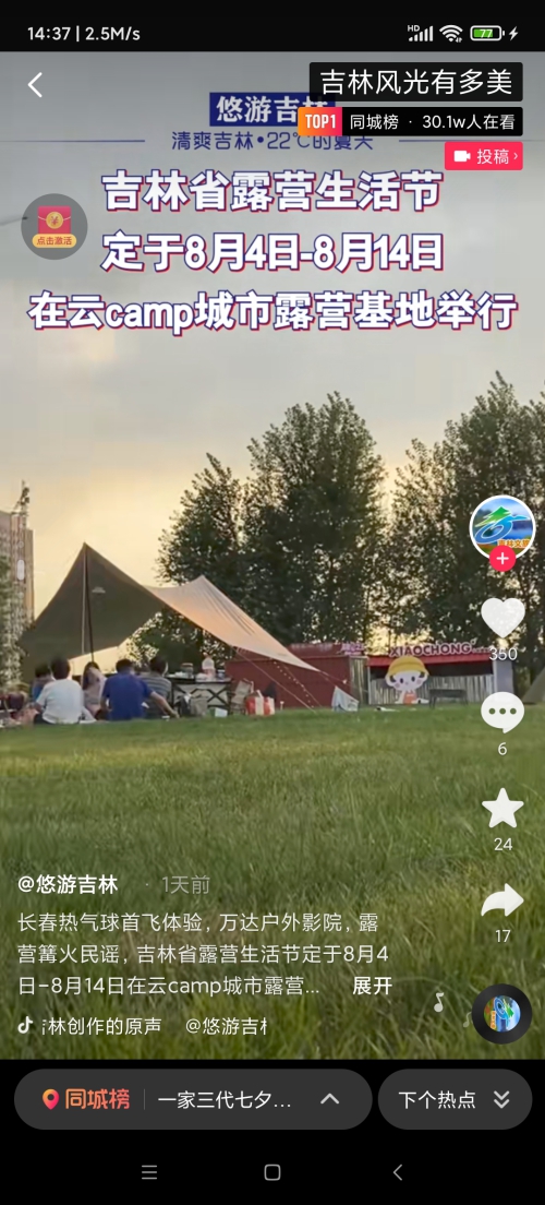 这几天“直线飙升”的热点话题——吉林省首届露营生活节启动!