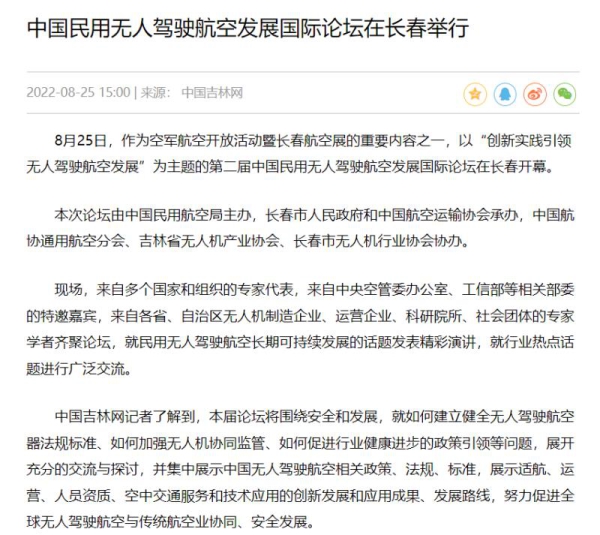 此外,本届航空展的各项相关的活动也同时进行。这不,“中国民用无人驾驶航空发展国际论坛”今天在长开幕。