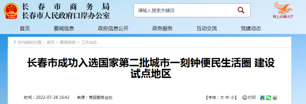 今年7月28日,长春市商务局曾在官网发布了一条标题为“长春市成功入选国家第二批城市一刻钟便民生活圈 建设试点地区”的消息,内容中包含大量信息。