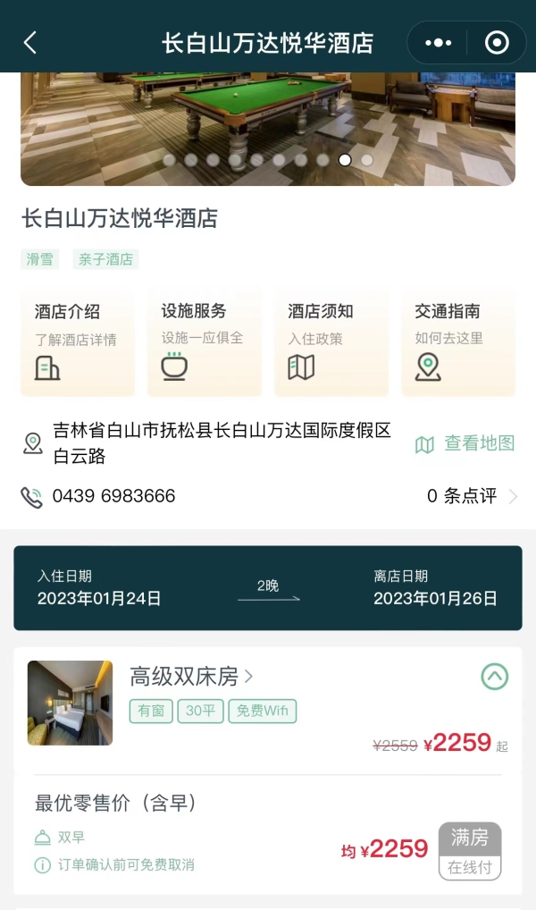 长白山万达国际度假区附近的多家酒店在春节期间满房,天南地北的游客在吉林游长白山、玩高山滑雪,洗冬季温泉。