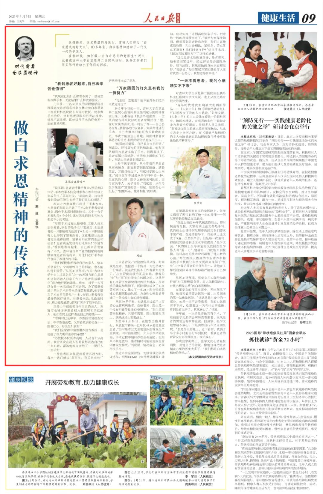 人民日报海外版9版头条刊发《做白求恩精神的传承人》,报道了吉大二院三位医德高尚、医术精湛的好医生的事迹。