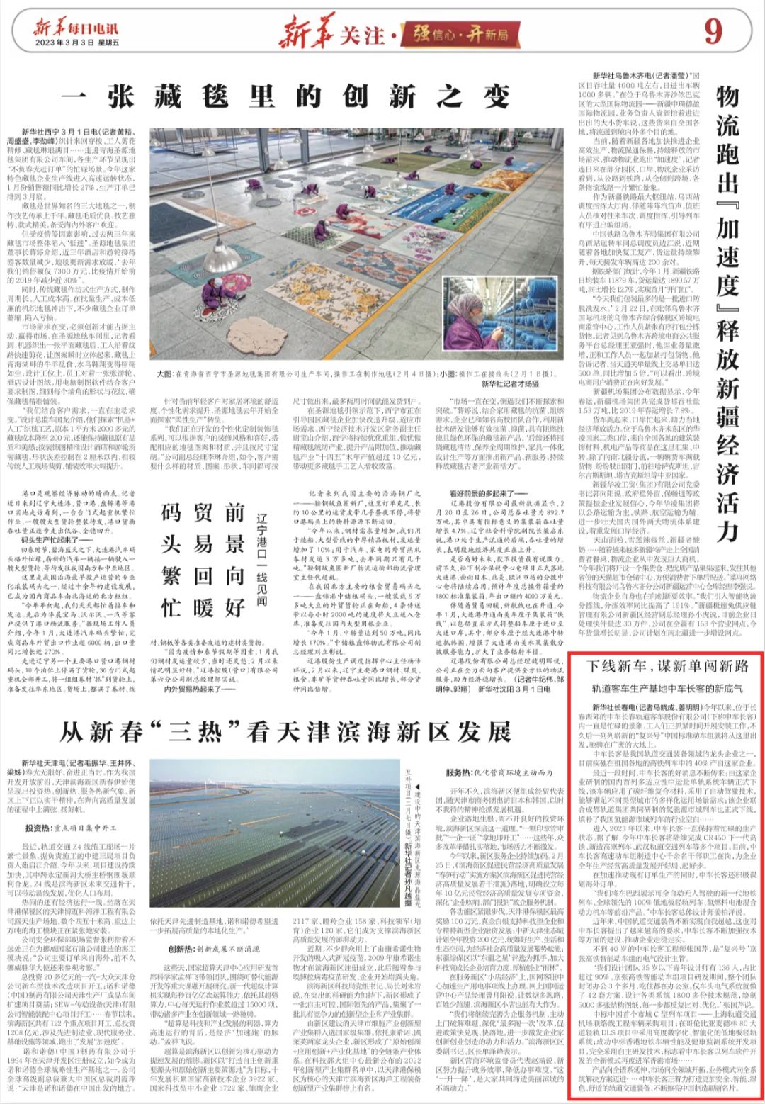 新华每日电讯刊发《下线新车,谋新单闯新路 轨道客车生产基地中车长客的新底气》,以中车长客多辆新车下线为切入点,报道中车长客创新发展,积极拓展海外业务,不断擦亮中国制造靓丽名片。