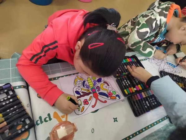 活动现场轻松愉悦,小读者们阅在其中、画在其中、乐在其中。活动结束后一位小读者拿着作品开心地说,回家之后要把蝴蝶送给妈妈,下次要带妹妹一起来报名。