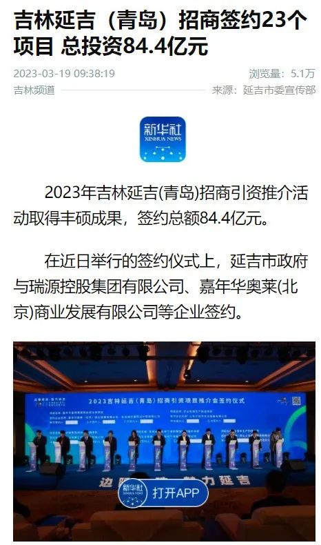 新华社客户端推出《吉林延吉(青岛)招商签约23个项目 总投资84.4亿元》。