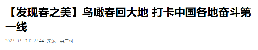 CCTV-17农业农村频道“中国三农报道”播发《吉林:“鸟中老虎”凶悍夺食》,展现迁徙过境的候鸟在吉林珲春敬信湿地停歇补给的场景;央视新闻客户端推出视频报道《90秒带你看呆萌小鸡诞生记》,报道吉林省四平市梨树县孵化养殖基地智能化、规模化种禽养殖新图景;央广网“发现春之美”专栏刊发《鸟瞰春回大地 打卡中国各地奋斗第一线》,其中图片报道吉林油田的工人们干劲十足。
