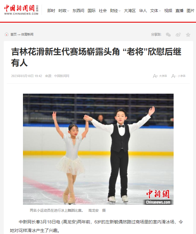 中国新闻网推出《吉林花滑新生代赛场崭露头角 “老将”欣慰后继有人》。