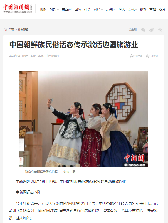 中国新闻网刊发《中国朝鲜族民俗活态传承激活边疆旅游业》。