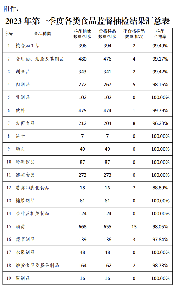 附件:2023年第一季度各类食品监督抽检结果汇总表