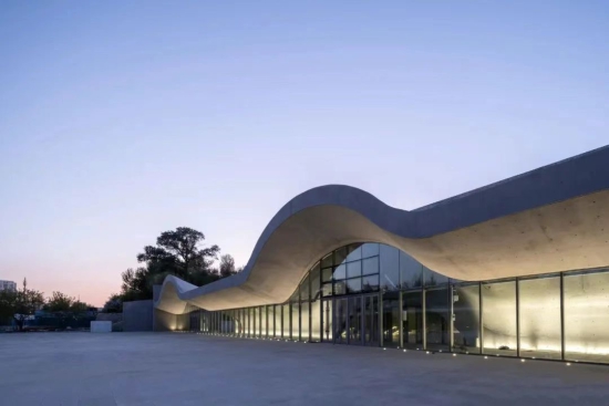 伪满皇宫博物馆之眼艺术宫建成于2023年,总建筑面积16650平方米,位于伪满皇宫博物院东南,为清水混凝土建筑。展馆为多层建筑,地下二层,局部地下三层,建筑总高度15.8米。