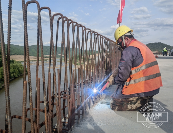 东金沟松花江特大桥全长1127米,是中国中铁蒲烟高速01工区控制性关键工程。钢筋绑扎、焊接……一片繁忙施工景象。