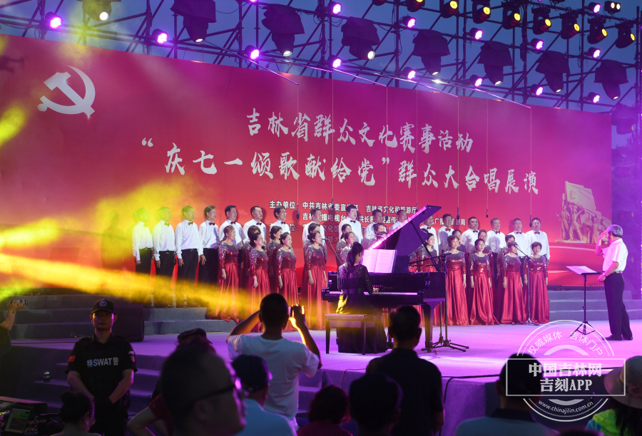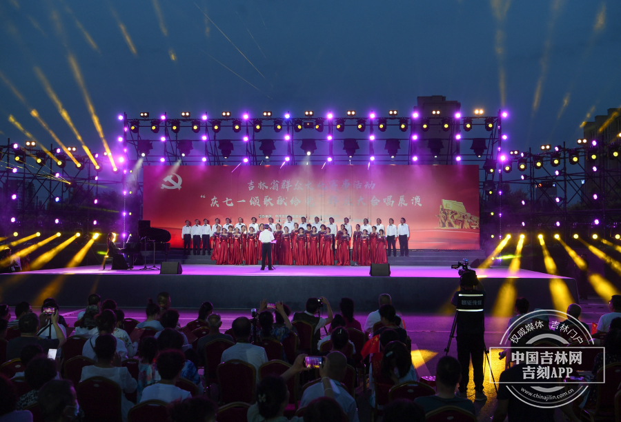 群众心声群众唱,为了迎接党的生日,表达群众爱党颂党之情,6月30日晚,“庆七一颂歌献给党”群众大合唱展演在长春经开区会展广场举办。此次演出由吉林省委宣传部、吉林省文化和旅游厅、吉林广播电视台、长春市委宣传部、长春市文化广播和旅游局主办。