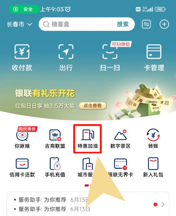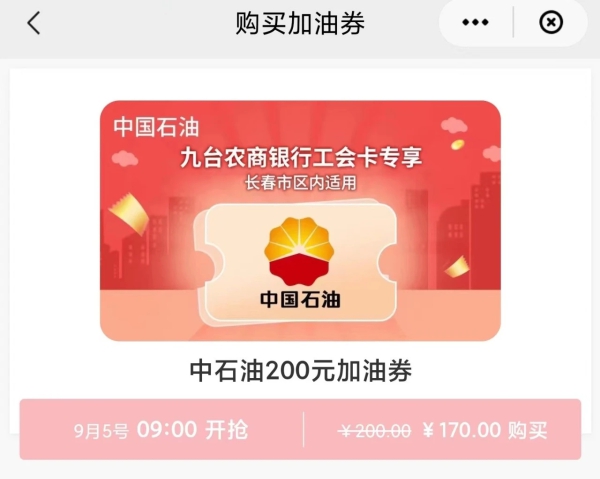 工会会员在云闪付APP-“特惠加油”入口抢购九台农商银行工会卡专享中石油200元加油券
