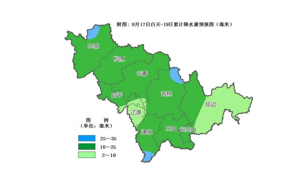 其中,17 日午后到夜间,白城有小到中雨,松原、吉林东部、通化、白山、延边、长白山保护区有小雨;