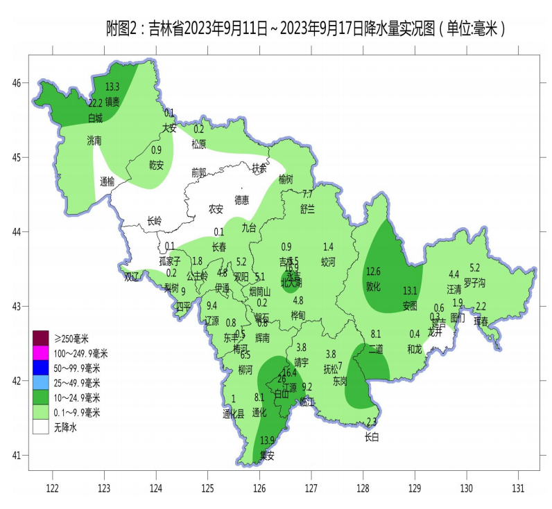 降水稍少。全省平均降水量4.3毫米,较常年少58%。各地区较常年少20%~97%。