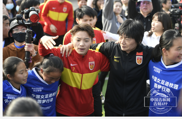 “我不敢相信自己有机会能再和中国女足的姐姐见面,看着她们在绿茵场上为祖国驰骋拼搏,我好羡慕!”景成学校女足队员陈璐说。