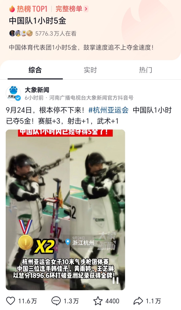 9月24日,杭州亚运会首日比赛,这夺金速度也太快了吧。