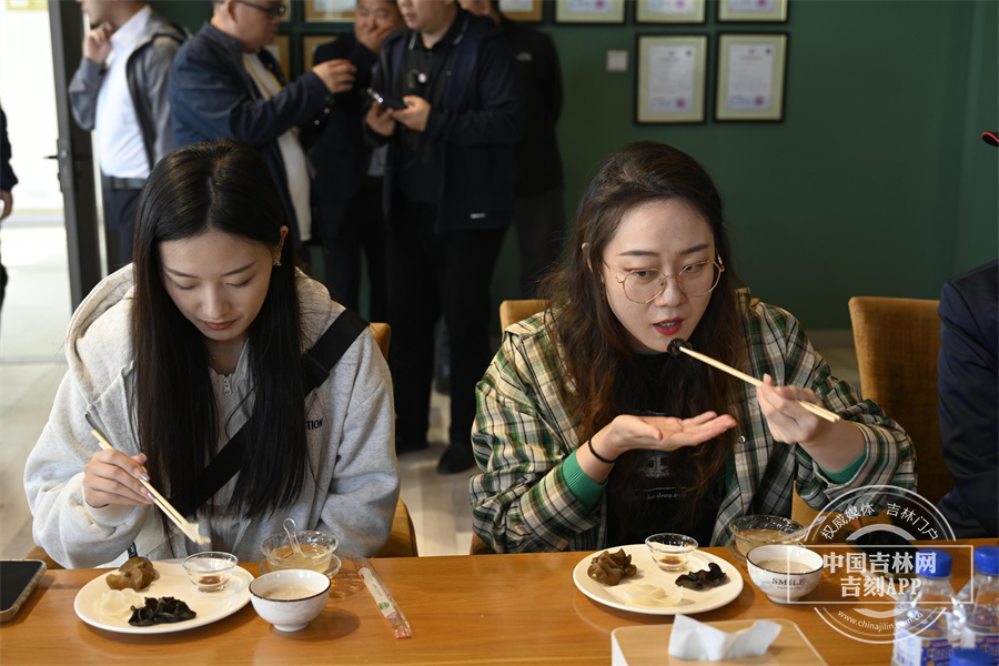在产品展示区,工作人员自信满满地拿出了自家的拳头产品,名为脆脆、润润、糯糯的三种木耳请大家品尝,凉拌做法可以充分品尝到汪清木耳的原味