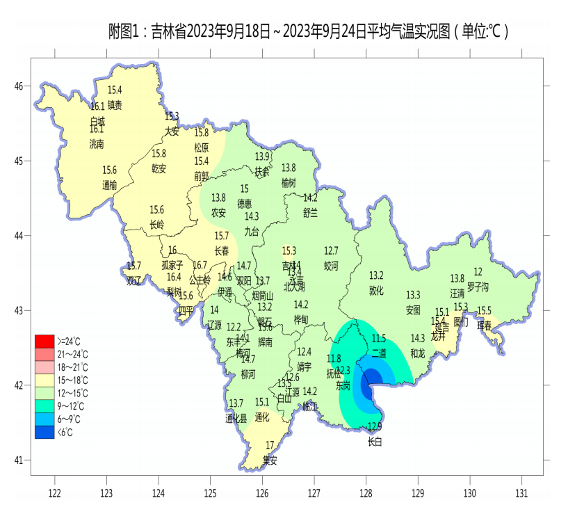 上周,我省气温偏高。全省平均气温15.4℃,较常年高1.3℃。其中,辽源较常年低0.5℃,其他地区较常年高0.4℃~5.9℃。