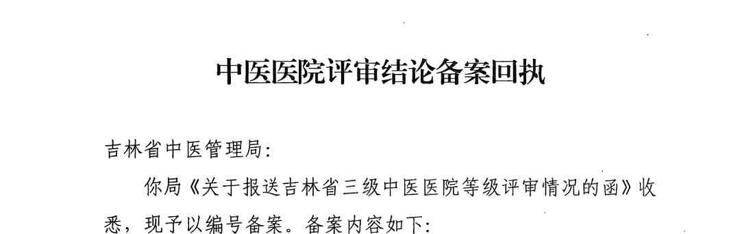 2023年9月19日,国家中医药管理局医政司针对吉林省中医药管理局《关于报送吉林省三级中医医院等级评审情况的函》正式发文回执,确定了长春中医药大学附属第三临床医院为三级甲等中医医院。