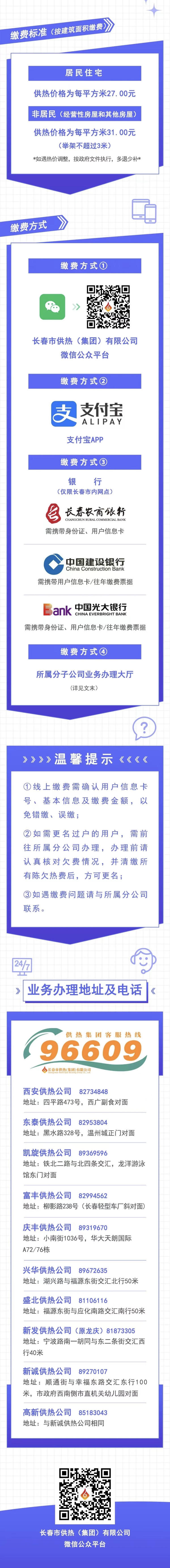 10月12日,中国吉林网记者从长春市供热(集团)有限公司获悉,2023-2024年度采暖期热费收缴工作已接近尾声,温馨提示还未缴纳热费的用户于2023年10月20日前进行缴费,以免影响正常供热。