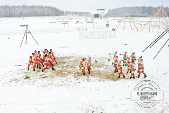 东方甄选吉林行外景地选在了长白山脚下,经过一夜清雪洗礼,一片银装素裹,秧歌队穿着鲜艳的具有东北特色的服饰,在雪地里跳起了欢乐的大秧歌,也开启了此次东方甄选吉林行的序幕。