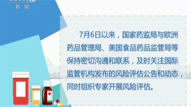 7月6日以来,国家药监局与欧洲药品管理局、美国食品药品监管局等保持密切沟通和联系,及时关注国际监管机构发布的风险评估公告和动态,同时组织专家开展风险评估。