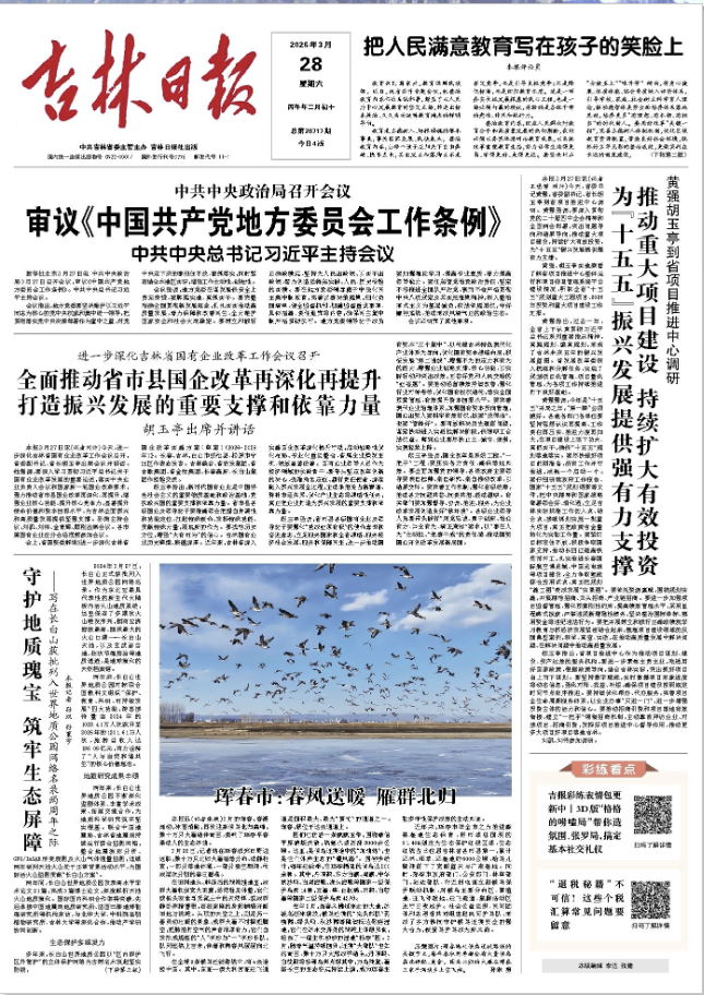 牢固树立和践行正确政绩观 奋力推动“十五五”开好局起好步 今天,省委副书记、省长、省政府党组书记胡玉亭主持召开省政府党组理论学习中心组集体学习、常务会议,专题学习习近平总书记...[详细]吉林日报 2026-03-27