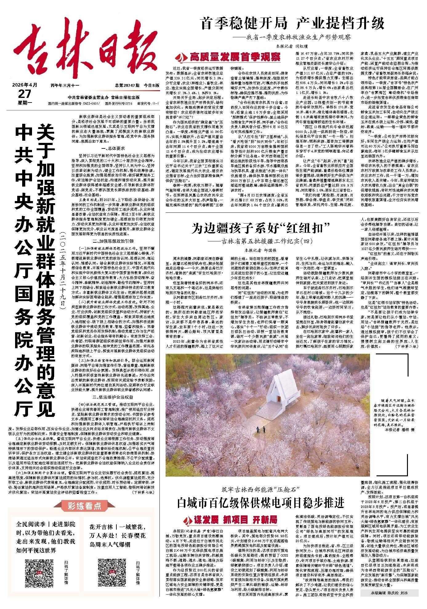 一周“昕”气象|平均气温11.5℃,本周我省气温多波动 4月27日,星期一,长春市天气不错。上周,我省气温稍高。上周,我省气温稍高。全省平均气温10.6℃,较常年高1.0℃。其中白城...[详细]中国吉林网 2026-04-27