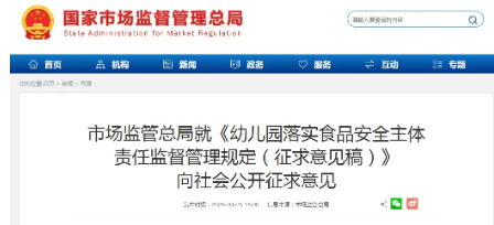 幼儿园食堂禁止使用亚硝酸盐!两部门公开征求意见→ 近日,市场监管总局会同教育部组织起草《幼儿园落实食品安全主体责任监督管理规定(征求意见稿)》(以下简称《征求意见稿》...[详细]