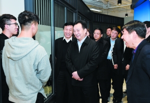 13日,省委常委、市委书记王君正到南关区调研时,在中东·四海互联网+创业基地与创业大学生亲切交谈。 李天 摄