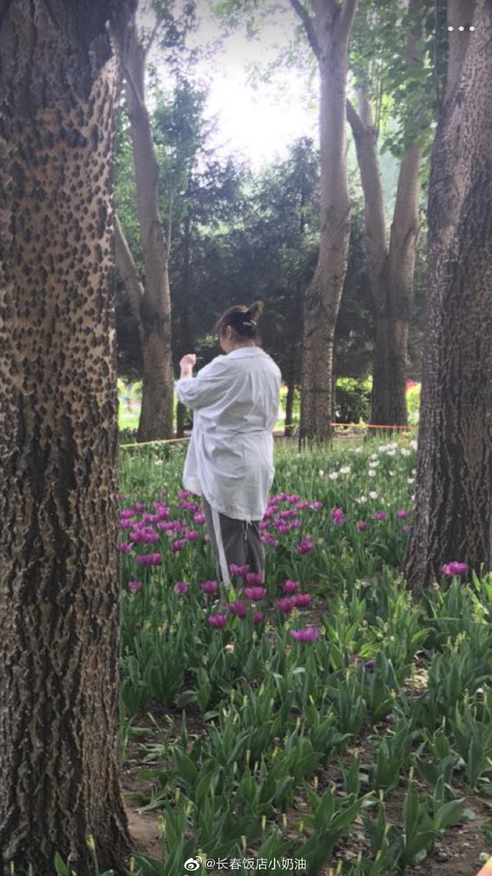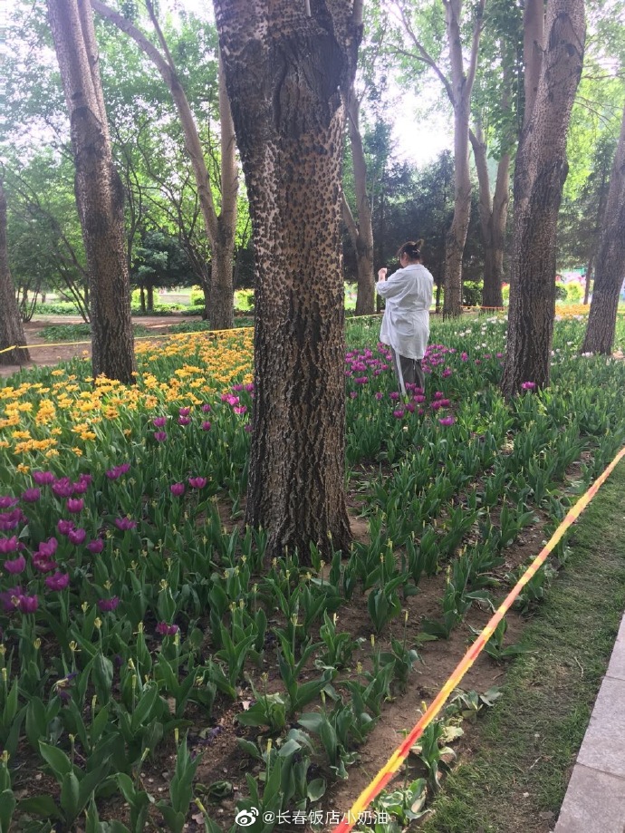 网友爆料:长春公园的郁金香开了,又发现一些游客踩踏郁金香,看这素质